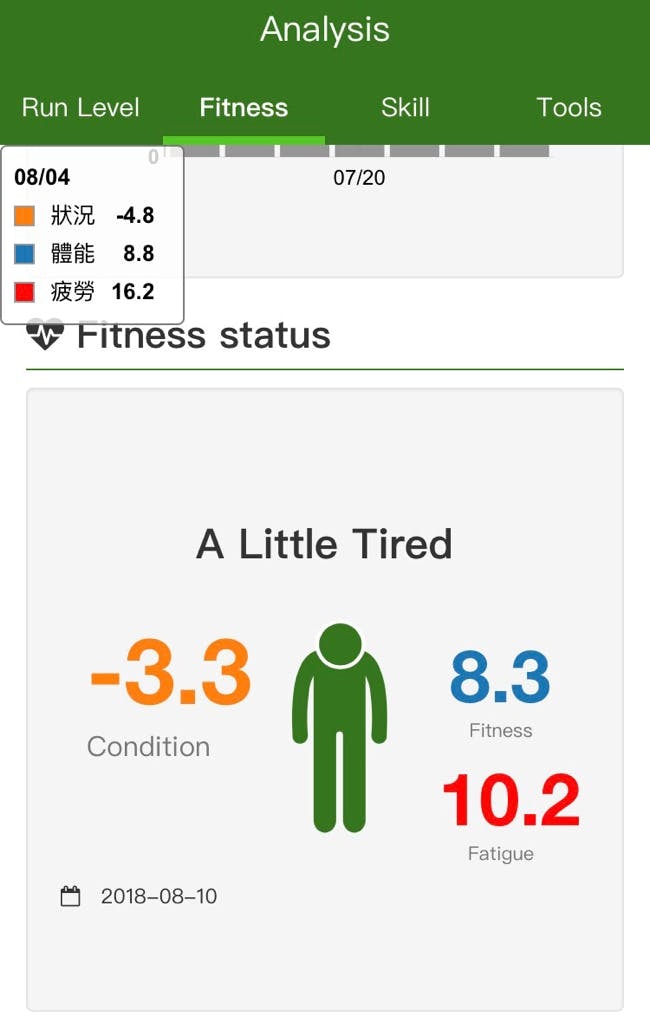 Figure 3 & 4: RunningQuotient 能顯示練習後身體體能狀況