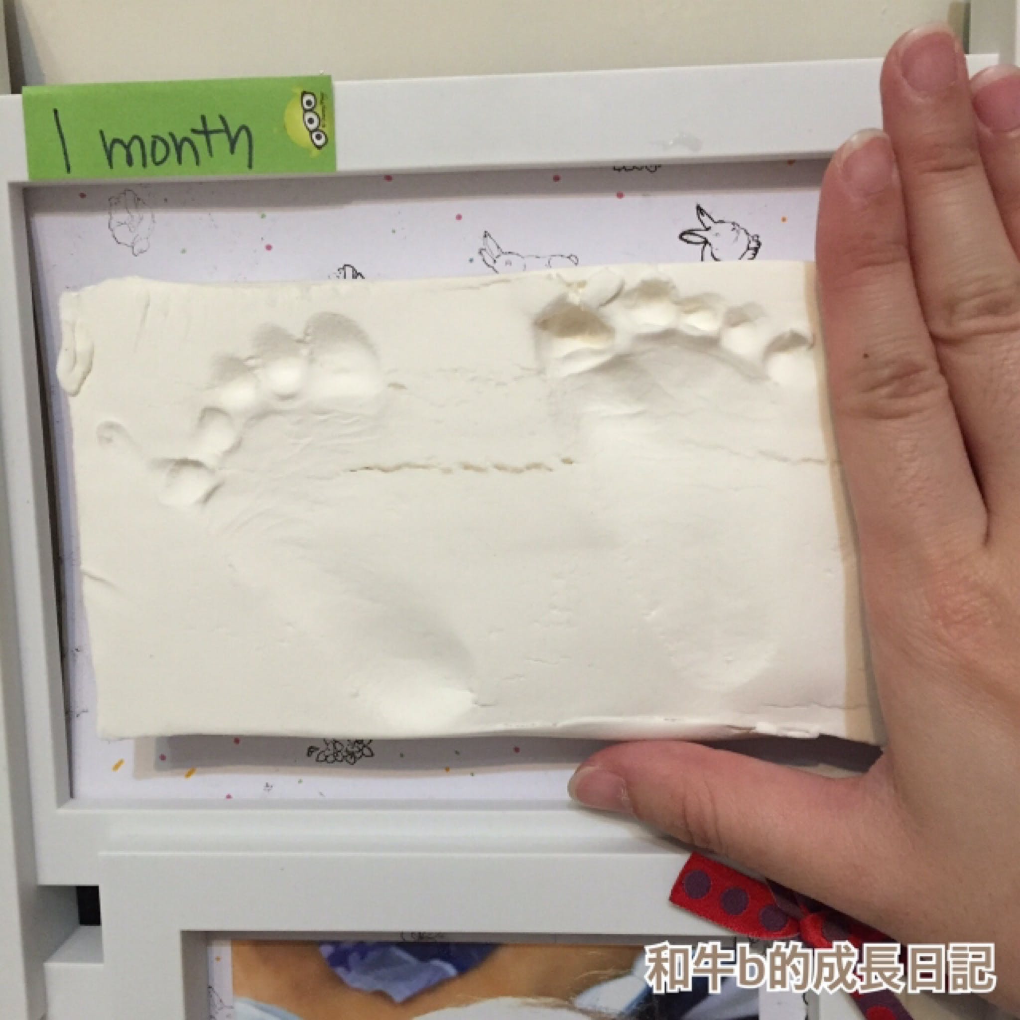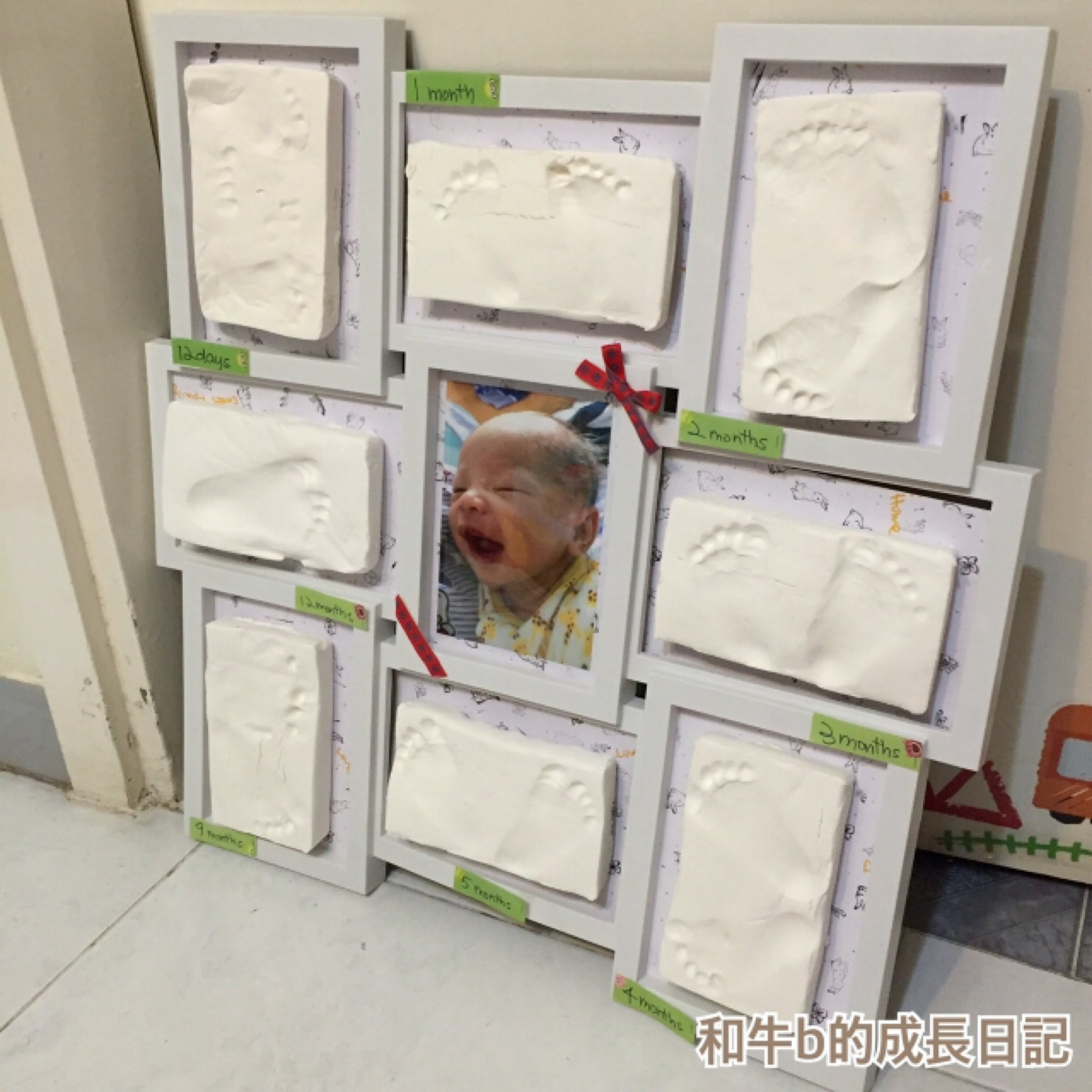 BB生長速度真係好快! 想佢留住細細粒咁, 其實係冇可能架~佢唔識長大亦唔係好事~就算個個月幫佢度高睇到BB長大, 係呀, 係見到個數字變大...但其實都唔夠睇到佢D腳板手掌一路一路咁大咁過癮~冇咁實在, 同埋咁滾動~建議用輕黏土, 因為輕黏土質地較軟身同埋輕, 唔需要太出力就可以整到個形點解唔用紙黏土? 因為紙黏土比較硬身, 要好出力先打到個印, 而且紙黏土本身有D粉, 有機會呢D粉會令BB皮膚敏感痕癢, 而且紙黏土本身都幾有重量, 第時Keep就會麻煩D, 同埋容易D爛打印 - 我會o係BB沖涼之前做呢件事~因為打完印即刻沖涼洗返乾淨~搞掂~有紅色, 藍色, 綠色, 黃色, 黑色~如果有恆心有毅力~第一次整, 好貪心, 想整埋手仔~但係和牛B唔太合作...點都唔願意攤大手板~所以...打左個拳頭印~雖然話, 輕黏土軟身, 但都要靠我地幫手禁一禁手同腳仔打印嘅~佢仲細, 唔敢太出力~~所以都唔係打得好好, 唔係好夠清楚~第二次~滿月的腳仔~今次唔打手印了, 因為佢係唔會攤大手板嘅~所以我決定放棄~有左上次嘅經驗~今次係咪清楚好多呢~~呢個一年任務,我最終無做齊十二個月。只選了和牛B十二朝、一個月至五個月、九個月及十二月去印腳仔。因為發現和牛B頭半年的腳仔增長不係太明顯。所以,我總共做有8個腳仔印。花咗心機去留住腳仔印,當然要將成品好好地裝裱好吧! 所以我就淘咗一個相架,相架也有很多個款式,格數亦有很多種,所以我也花點時間去揾。由於我係有8個腳印成品,我可以揀8格款式,不過我都想喺相架裡加插和牛B嘅相片,所以我就買咗個九格款家庭相架 。準媽媽也可以考慮為BB製作這個充滿紀念性嘅成長印記哦~--------------------------------------------------Facebook專頁: 和牛b的成長日記http://:www.facebook.com/80smami/http://www.instagram.com/wagyubmami/